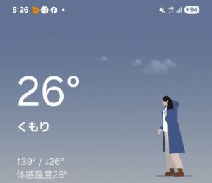 コート到着時の車温度計は26℃、スマホ現在地気温も26℃。まだそこまで暑くないが湿度が高い(´;ω;`)ウッ…。