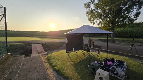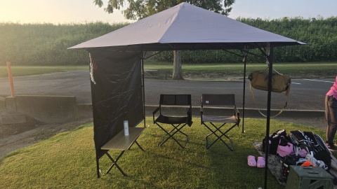 早朝なので朝日の角度がほぼ真横からとなりサイドウォールがないと日陰スペースが少ない。
