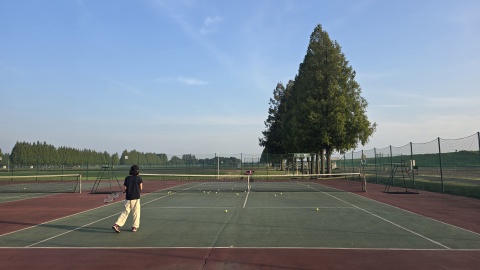 本年16回目のテニスは早朝の練習会!次週は男子ダブルスベテランクラスの市民大会。