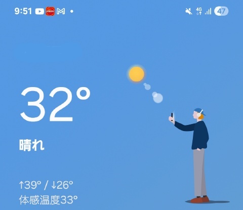 終了時の車温度計は35℃、スマホ現在地気温は32℃。8月末だというのに暑くて昼間のテニスはとてもじゃないが出来ないな…張り切り過ぎて少し頭痛がするし( ノД`)シクシク…。