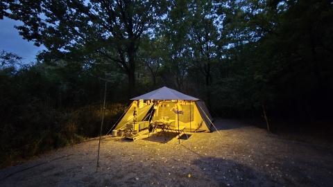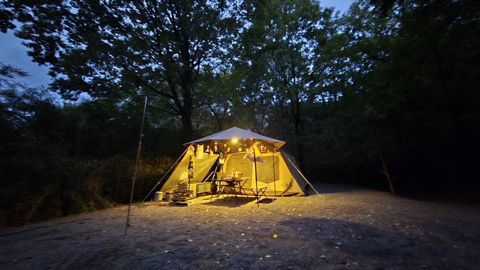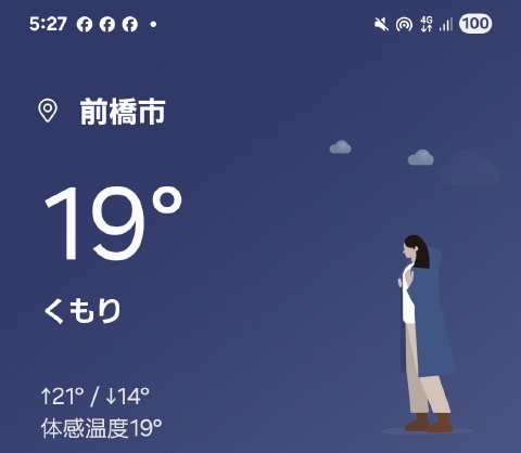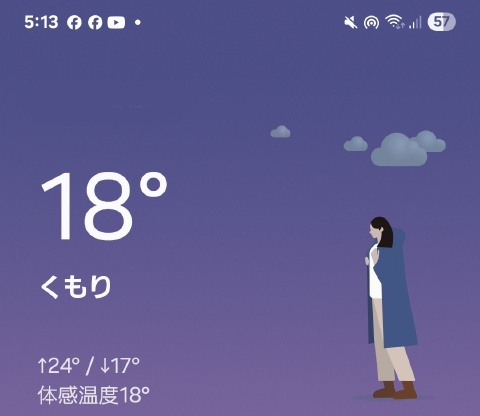 5時半頃の幕内外気温は18℃、スマホ現在地気温19℃と朝方の冷え込みもなく、幕内結露も発生せず。