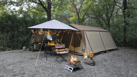 [SOLO UP/ワンアクションタープM-1424]のタープ下レイアウト。
