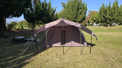 170cmポール*2でキャノピーを立ち上げスタイル。通常のソロキャン時ではポール構成が少なく時短展開&撤収が出来るこのスタイルが常用となりそう。※先の試張りの画像を流用
