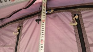 170cmポール*2+130cmポール*2の計4本を使用することによりソロでは必要十分な日除けスペースを設けることが出来る。但し雨天時キャノピー上に雨水が溜まるリスクがあるため雨天時はフロントポールを160cmに低くするか、センター1本で立上げ雨水が左右にながれるようにする必要がある。キャノピー元の高さが180cmあるのでフロントポールを180cm以上にすると雨天時に幕内に雨水が侵入する可能性あるため、急な雨を想定するなら170cm以下が良いと思われる。