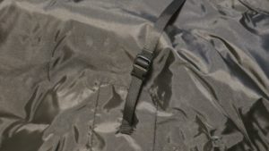 フライシート裏面にはコット装着用のバックル付ベルトが2本。インナーテントとして使う場合はバックルで固定しなくても特に問題はない。