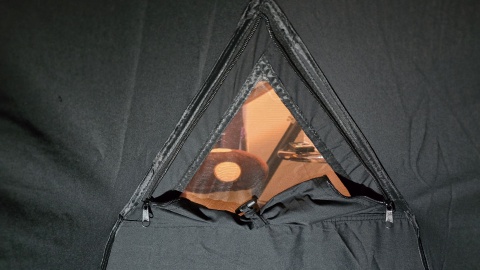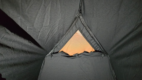 両側面には三角メッシュパネルを2つ備える。ブラックカラーは幕内が暗いのでここを開けておくことにより採光効果もある。