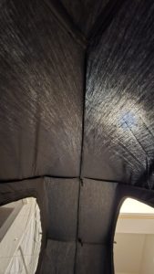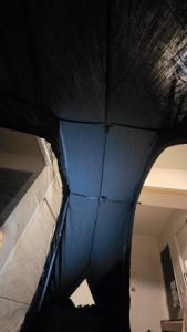ブラックカラーのポリコットン生地の遮光性は高い反面、フルクローズ仕様だと作業し難い位幕内が暗い。