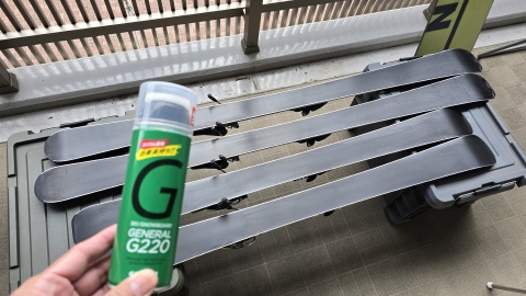 前日に家族分のスノボ及びスキー板をリムーバー処理。次いで評判も良いが価格も高い液体ワックス[GALLIUM/GENERAL G220]処理を施す。実際の滑りの程が如何程かはスノボ終了後に判断。