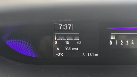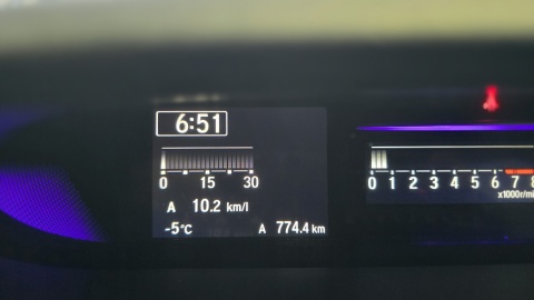7時頃の車温度計は-5℃、スマホ現在地気温は-3℃。