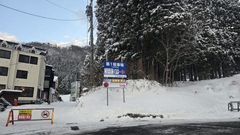 7時半頃に『野沢温泉スキー場』第一駐車場に到着。駐車料金は1日1,000円。