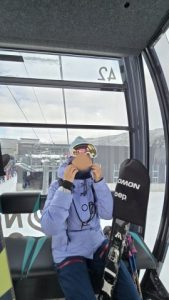 林間コースが長く傾斜もなくスノボには難儀(>_<)。体力がゴリゴリ削られ、小生は一箸早く15時半頃に上り(´;ω;`)ウゥゥ。帰路に備えて、ヘルメットを[MAMMUT/ニルヴァナ22L]に装着してみた。スマホ現在地気温は3℃。