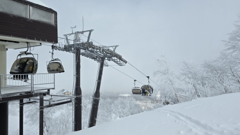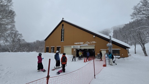 “長坂ゴンドラリフト”の長蛇の列を避け、一発目は隣のリフトへ。