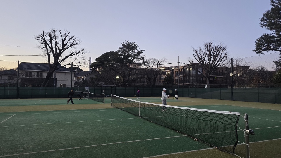 2026年1回目のテニスは会社先輩のチームにゲスト参加。気温は15℃とかなり暖かいが、風が強く、西日も相まって中々に厳しい打ち初めとなった。後、ドリンクを車に忘れてしまい、自動販売機もコート近くに(´;ω;`)ウッ…、公園の給水所で水分補給をする羽目に(>_<)。出先テニスは特に水筒ボトルを忘れてはいけない!