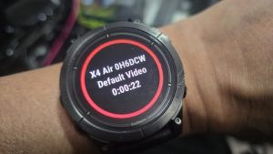 4.ガーミンウォッチでアプリを開くとX4Airが認識され、録画オンオフ、ハイライト機能(ファイルマーキング)、トラック機能(ディープトラック追跡)の操作が可能。