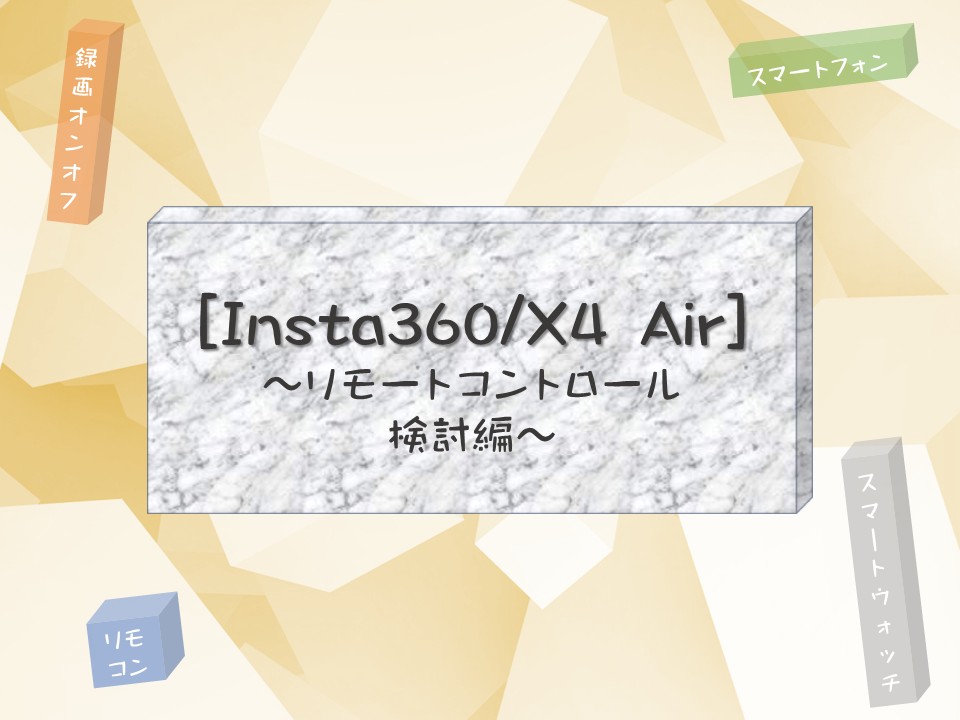 360°カメラ[Insta360/X4 Air]をこれまでテニス、スノボ、キャンプ、ダンス(娘)の4つのシチュエーションで撮影してきたが、録画オンオフの際にイチイチ自撮り棒を縮める必要があり煩わしさを感じるようになった。シームレス操作にも対応しているがシチュエーションによっては使い勝手悪い。今回は自撮り棒を伸ばしたままで録画オンオフのリモートコントロールのバリエーション5種類について思案してみる。