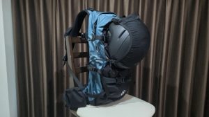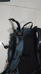 ショルダーベルト上方のギアループには装着可能だが、背負った際の位置が高すぎて実用的ではない。