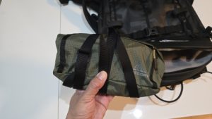 ウエストポット右にはカメラバッテリーとミニ三脚、ミニリモコン取付用ループ、レンズ拭きの入った[UNKNOWN/ハードケースミニ]をパッキング。