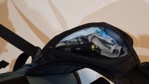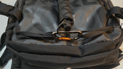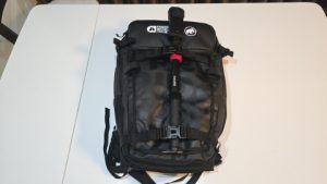 自撮り棒114cmをマウントするならアバランチポケット及びギアループセンター、ショルダーマウントで固定できる[MAMMUT/ニルヴァーナ22L]の使い勝手が良い。