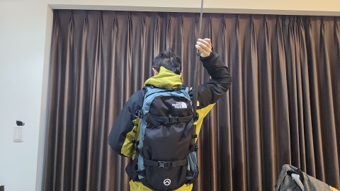 自撮り棒300cmをマウントするならアバランチポケット及びサイドポケットに固定できる[THE NORTH FACE/チュガッチ28]の使い勝手が良い。
