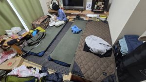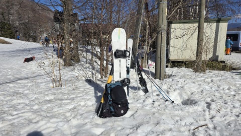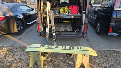 スキー宿と違い乾燥室がないため、スノボは玄関外で、ブーツは玄関内で乾燥。出発前にワックス処理!