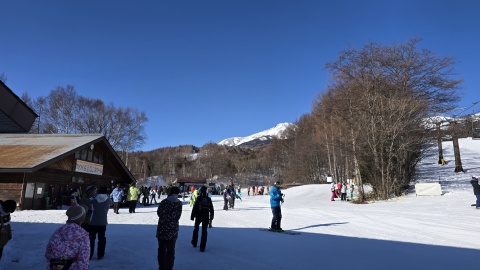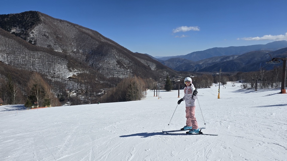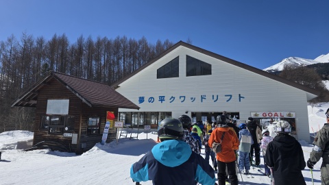スキー場は縦に長いコース。4列乗車を推奨するのは良いが、低学年生を無理に押し込むのはやめて欲しい…そしてうまく乗れなかった時は早々にリフトを留めてくれないのならせめて親と一緒に乗せてくれヨ…