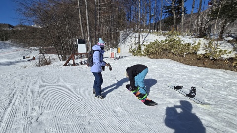 嫁と交代でスノボ指導…スキーとは勝手が違い苦戦していた(>_<)。