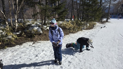 ゲレンデには雪があるが既にコンディションは悪い…そして少し歩いただけで汗だくでインナーダウンを脱ぐ程。