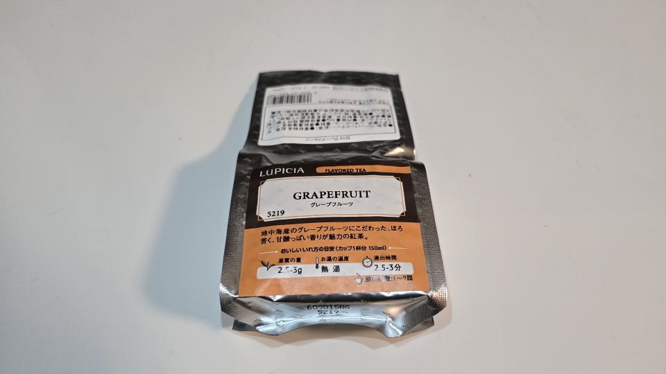 製品HPから抜粋した[LUPICIA/グレープフルーツ紅茶]の製品概要がコチラ。[LUPICIA/グレープフルーツ緑茶]もあるが温紅茶なら紅茶の方が美味しい気がする。