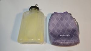 ドリンクボトル2種も新たに新調!お茶0.9Lに薄めのスポドリ1.5Lの2.4Lを用意。[Mont-bell/スクエアボトル アクティブ 1.5L]は予め水を1,100mL入れて凍結。試合当日に1L用のスポーツドリンク粉末を入れて1.5L迄水をメスアップしようと思ったが蓋が凍って開かない(>_<)。次回はスポドリ粉末を溶かしてから凍結させよう。