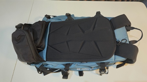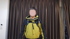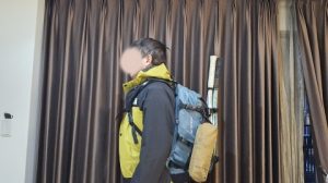実際にフィッティングした姿がコチラ。ウエスト及びショルダー、ショルダースタビライザーのフィッティングをしっかりやれば重量10kgもそこまで重さを感じないが、長時間歩く登山ではないので綿密にやらなくても良いかも。