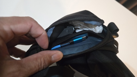 ショルダーポケットにはサングラス、右ウエストポケットにはハンカチ/ティッシュ、左ウエストポケットにはカメラアクセサリーをパッキング。