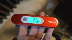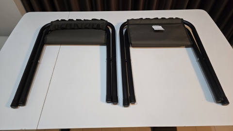 [KZM/フィールドBBQチェア]は全高34cmとやや低いが同じようにスノボメンテ台として使えると思われる。但し、[Livinbox/Shuterアウトドアスツール]はプラ素材なので雑巾で拭けば直ぐに乾くのに対して[KZM/フィールドBBQチェア]の座面は布地なので濡れたら乾き難い。