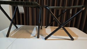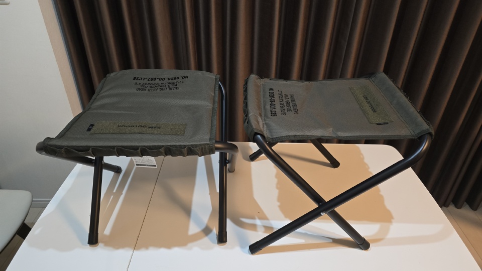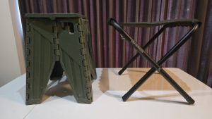 チェア及びミニテーブル、スノボメンテメンテ台として使用している[Livinbox/Shuterアウトドアスツール] と比べてみる。
