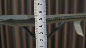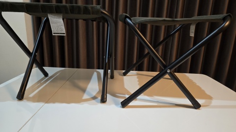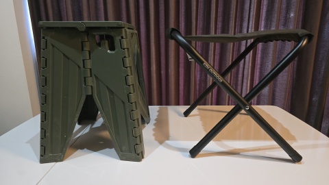 [Livinbox/Shuterアウトドアスツール]の折りたたみ時の厚さ4cmに対し[KZM/フィールドBBQチェア]は3cm。