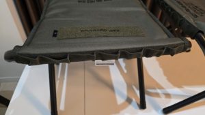 座面長辺にはデイジーチェーン付でカラビナやシェラカップを引っかけることも出来る。