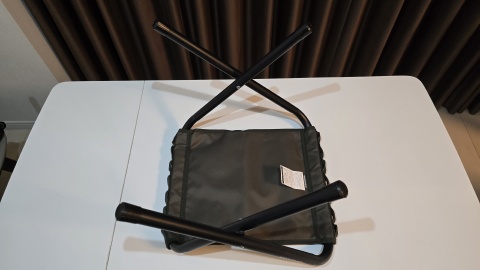 展開はチェアを開くだけの1アクション。座面生地は厚め。