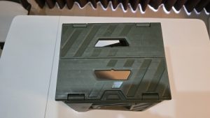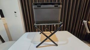 座面及び脚部間面積も広いためハードクーラーボックスやハード収納ケースの台座としても応用できる。