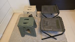 [Livinbox/Shuterアウトドアスツール]も[KZM/フィールドBBQチェア]もそれぞれ2脚所有している。