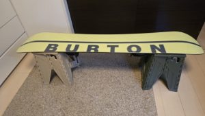 全高40cmの[Livinbox/Shuterアウトドアスツール]2脚をスノボのメンテ台としてこれまで使用してきた。