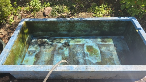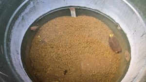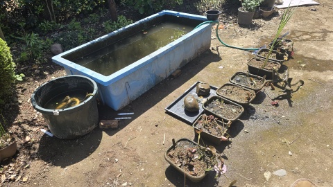 我家のビオトープ水槽最大容量を誇る[ダイライト/角型容器RL-500L]のリセット作業。越冬中に溜まった汚泥の量が凄く除去が大変(>_<)。底砂があるとメンテナンスの手間が増えるので今期は底砂なしで臨む。