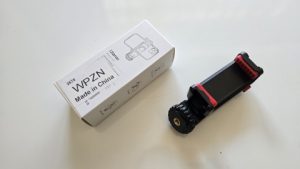 外寸105*32mm/重量51g。アクセサリーシュー付のスマホホルダー。所有の自撮り棒と併せて使う予定。