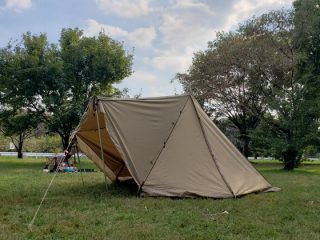 [オガワ/タッソTC]の試張り2回とソロキャン2回にて色々なアレンジを試してみた。その中から実用度の高い軸となるアレンジを考えてみる。写真を並べてみると1つの幕とは思えない位シルエットに違いが見られ、正に語源の“狸”の如 …