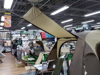 外寸:445*287*180(h)cm、総重量13kgの小型2ルームテント[オガワ/ティエラリンド]の展示をじっくり観察してきた。収容人数は3人用となっているが荷物スペースなどを考えると実質2人かな。オガワのスタッフさん …