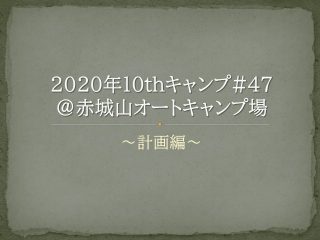 2020年10thキャンプ#47@赤城山オートキャンプ場 ~計画編~