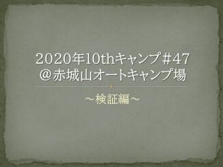 2020年10thキャンプ#47@赤城山オートキャンプ場 ~検証編~