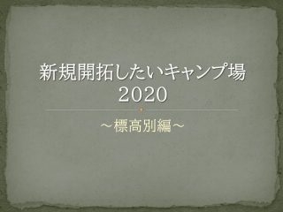 2020年に新規開拓したいキャンプ場を嫁共々ピップアップして標高別に並べてみた。コロナ禍が収束していないため状況に応じてキャンプ場を選択する必要がある。 ■標高の低いキャンプ場(ビーチサイド等) 冬場のキ …