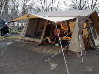 『北軽井沢スウィートグラス』3日目。朝5時頃の幕内気温は約11℃、幕外気温は約4℃と冬キャンプの様相。 (function(b,c,f,g,a,d,e){b.MoshimoAffiliateObj …